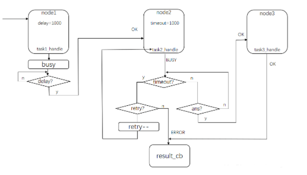 ͨ��������ϣ�����ǿ��գ��������һ��ģ�ͣ�������ϊ�ڵ㣬 ÿһ������ڵ��������ԣ��糬ʱ����ʱ�����ԣ�����������������ִ�н��������ҫ����˳��ִ��һϵ������ʱ�����ν�����ڵ㴮��һ���������������у�����������ĵ�һ���ڵ㿪ʼ���у����еľ�������� ok , busy ,error ������ok, ��ʾ�ڵ��ѵ���������������ɾ����error ��ʾ���г�������������ֹͣ���у����д���ص����������û������ƿ����������ȥ��busy��ʾ���������ڵȴ�ӧ�𣬻��ߵȴ���ʱ��������������������ϵľڵ㶼ִ���꣬���гɹ��ص���