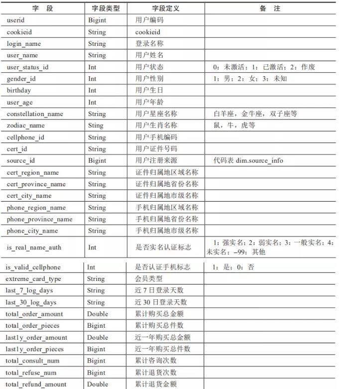 �漰���ݲֿ��еı���ҫ�����û���ϣ������ʒ��������ͼ����ϣ����ͼ����ŀ����app����־����web����־������ʒ���۱��ȡ�������û�����ģ�����л��õ���һщ���ݱ�����ϸ���ܡ�