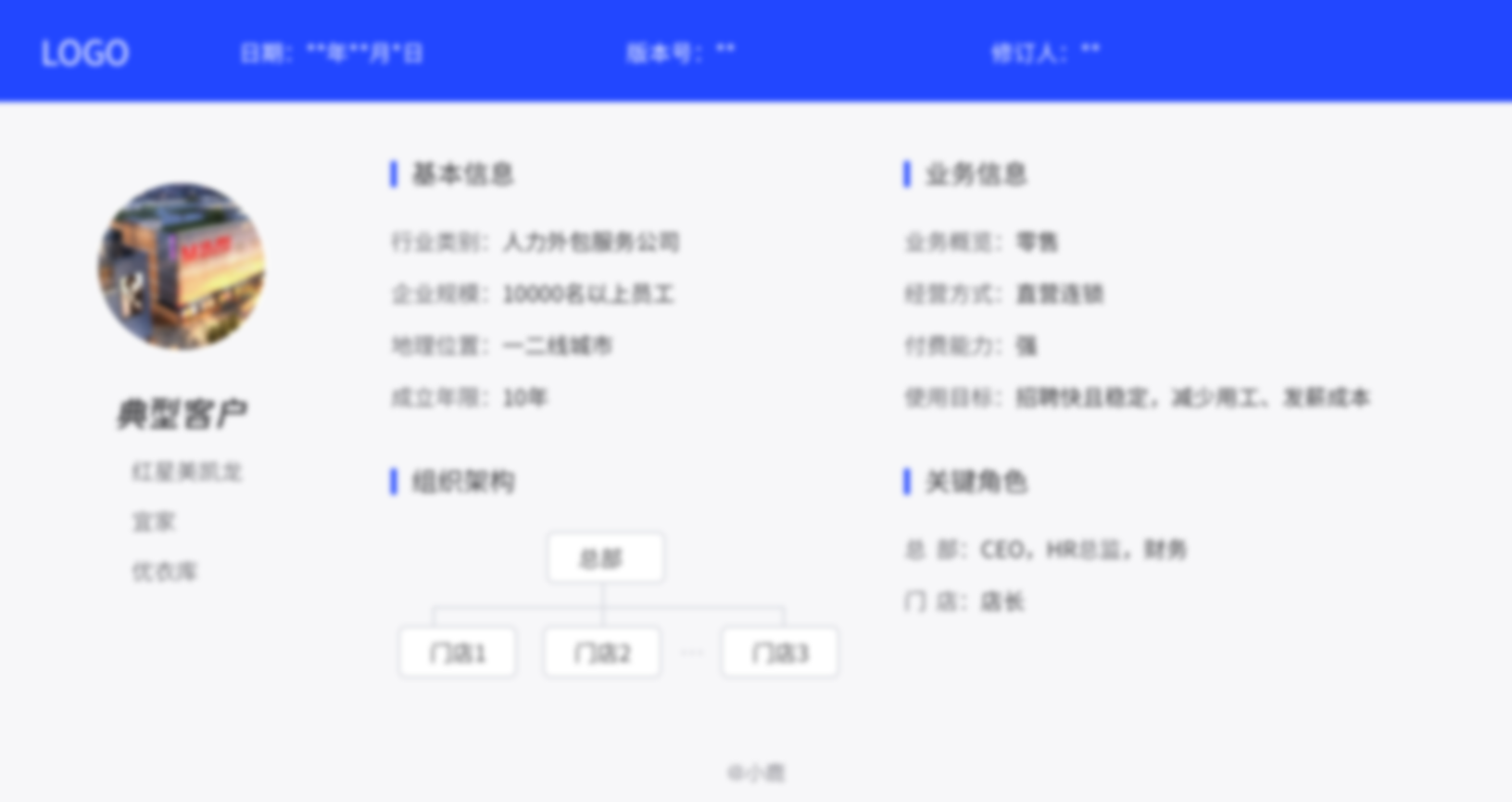对于企业:主要了解其企业规模、行业属性、业务流程、组织架构、机构里有哪些岗位/工种。这个信息主要由产品或销售采集,应该前置于角色画像。而我们第一步的业务研究中,很大一部分内容也来自于此。
