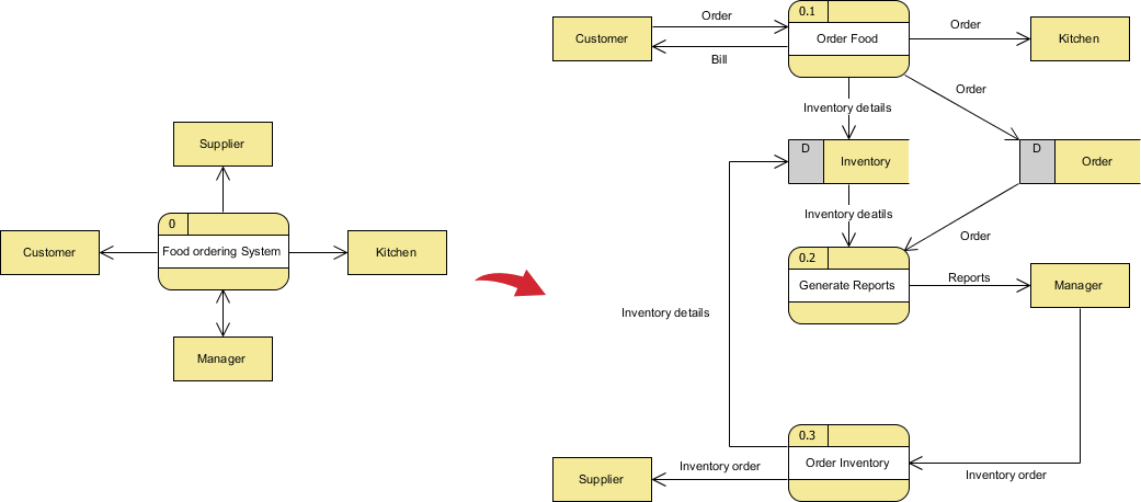 例如,如果需要在特定过程中显示更多详细信息,则该过程将分解为较低级别dfd中的多个较小的流程。这样,内容图或上下文级别dfd被标记为“级别0