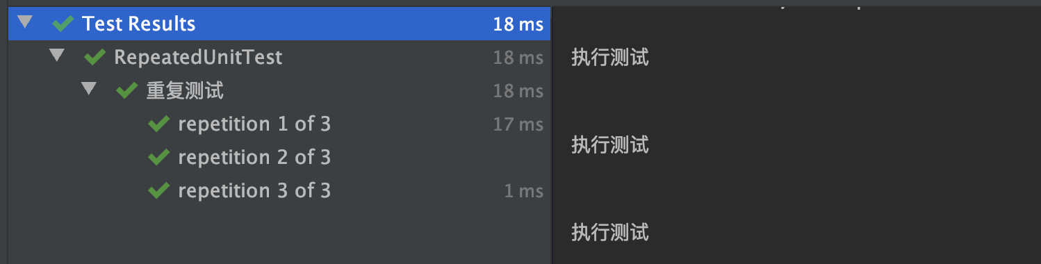 运行后测试方法会执行3次,在 idea 的运行效果如下图所示: