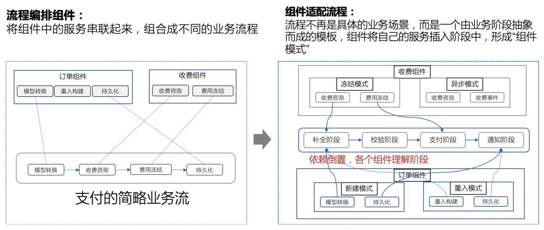 - 复用粒度既不会过大,过大的复用粒度比如业务流程,会导致无法消化更多的交易场景抽象和差异,最终导致业务流程的逐渐增多。